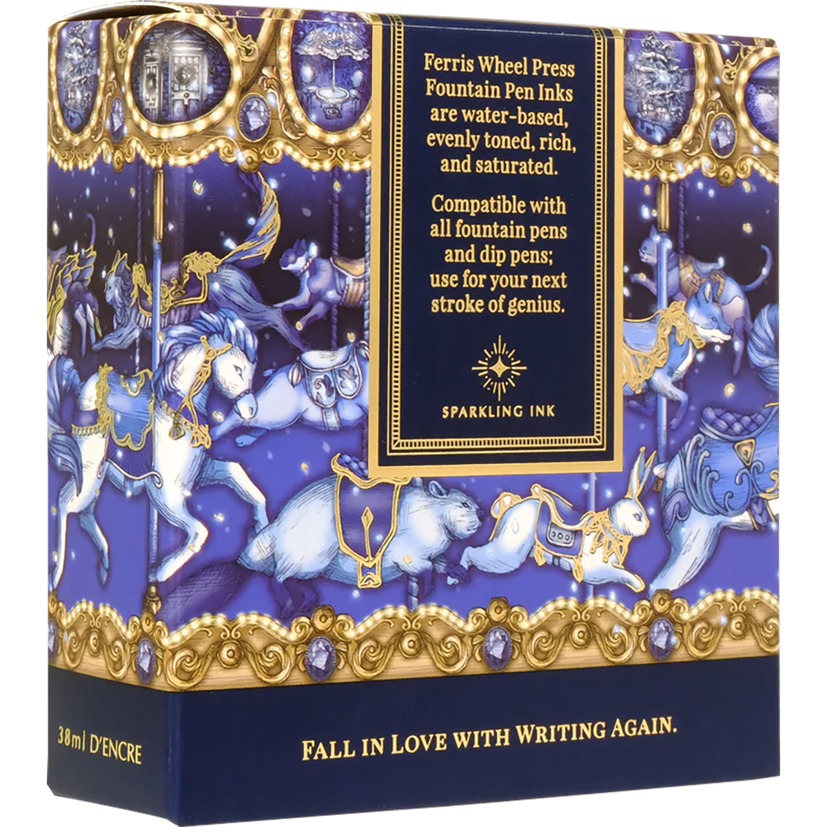 Inspired by cozy evenings and cherished memories, this ink captures the magic of a snow globe’s swirling beauty. Like a glowing carousel under twinkling lights, its classic navy hue with blue shimmer evokes warmth, nostalgia, and enchantment.