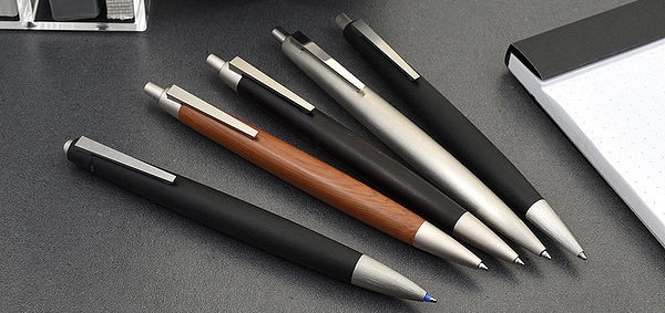 - Lamy 2000- Inspired by the Bauhaus design principles, the Lamy 2000 is an exceptional example of when excellent function comes from a sleek and minimal design without unnecessary frills or things to take away from the use of the object, in this case it would be writing. The original model was made from Makralon, a form of plastic that is reinforced with fiber glass, the pen can also be purchased in stainless steel or even wood to suit any preference. Don't let the minimalist design fool you, this pen is one of the best performing in its price bracket and if cared for correctly, will last years to come. All of Lamy's pens are made in Germany which contributes to the exceptional build quality and feel of these pens so when you buy the 2000 you are buying a piece of German engineering! The Lamy 2000 can be purchased in all the materials above from Pen Boutique and the price ranges based on which finish you decide on buying. The base Makralon model can be purchased for $62.40, $199.20 for the stainless steel, $103.20 for the wood, and $79.20 for the multi pen.