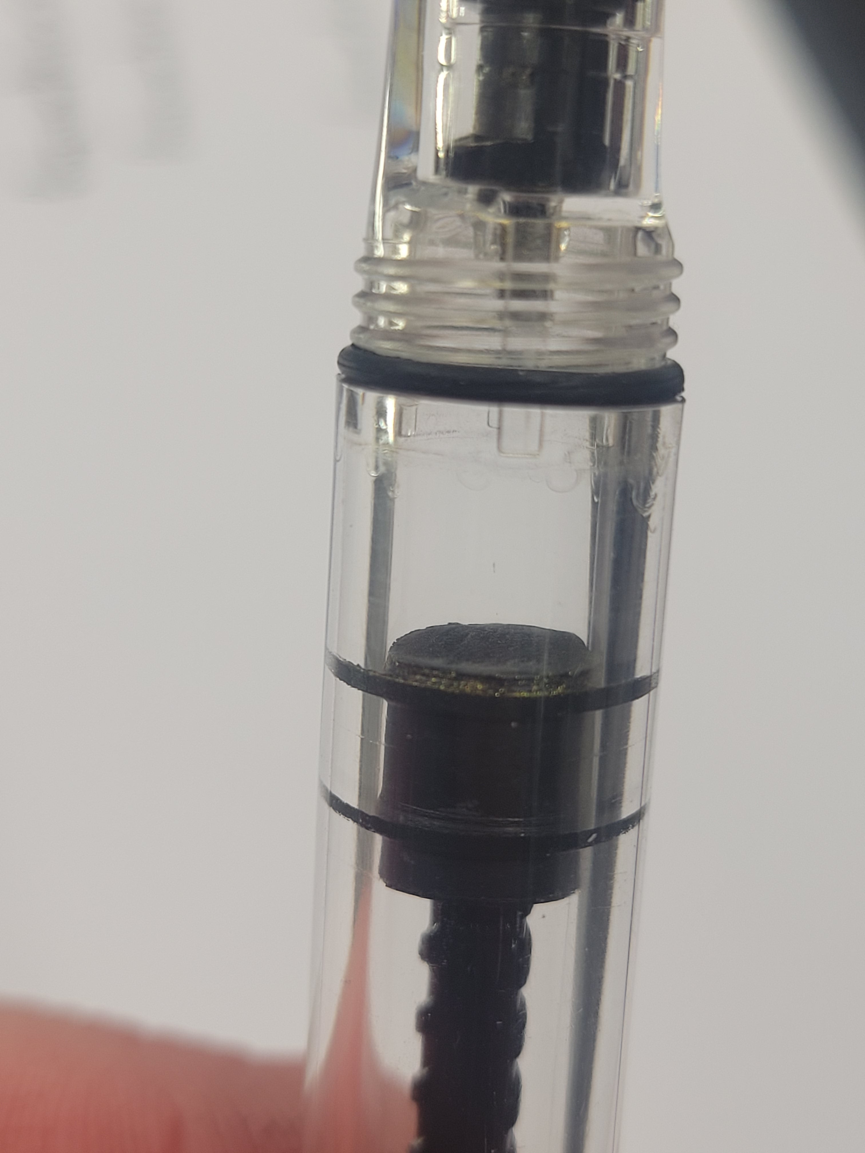 RMA return - pen is fine, nib is too "juicy", but was filled with a shimmer ink that was left behind. see photo(s). Has gift box, but no outer cardboard box.