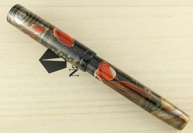 Namiki Emperor Goldfish: uno de los ejemplos más impresionantes del arte Maki-e de Namiki se puede ver en el modelo Goldfish que ves aquí. Según Pilot, es uno de los diseños de Maki-e más difíciles y laboriosos y sólo puede ser realizado por artistas muy hábiles y lleva meses lograrlo. El diseño está pintado a mano y el cuerpo es de ebonita del mismo tamaño que el emperador que mencioné anteriormente, pero este tiene la parte superior plana en lugar de un bolígrafo con forma de cigarro más tradicional y esto muestra el diseño maki-e casi como un pergamino pintado. lo que acentúa la belleza y el detalle del arte. El Goldfish se puede pedir de forma especial aquí en Pen Boutique por el precio de $15,000 y tenga en cuenta que cuando compra este bolígrafo, ¡está comprando una verdadera obra de arte funcional!