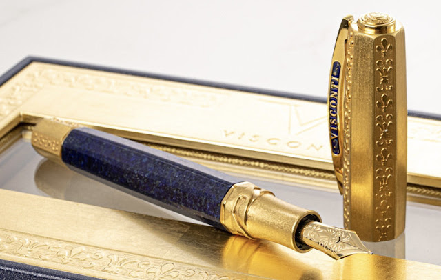 Medici il Magnifico (Lapislázuli): una de las plumas Visconti de apariencia y sensación más lujosas es la il Magnifico, que tiene un cuerpo hecho de piedra sólida de lapislázuli que luego se talla para darle la forma facetada al cuerpo. Los detalles Vermeil en el pomo, la sección y la tapa del pistón también añaden un peso considerable al bolígrafo, lo que lo hace sentir más sustancial en la mano. Este bolígrafo también es un llenador al vacío, lo que significa que obtiene una capacidad de tinta bastante grande y no tiene que volver a llenar el bolígrafo con tanta frecuencia, lo que puede hacerlo más útil y conveniente que los bolígrafos con capacidades pequeñas. El il Magnifico está hecho de materiales de calidad y tiene un precio de calidad, se puede comprar en el sitio web de Pen Boutique al precio de $ 2360, pero actúe rápido porque este bolígrafo fue una producción muy limitada.