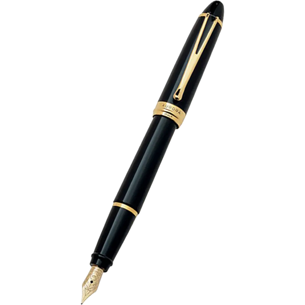 Aurora Ipsilon Deluxe Black Fountain Pen with 14K Gold Nib. The pen created to become the everyday friend of those who study and faithful companion for those who work: this mission is carried out with striking success by the Ipsilon, the pen that is eye-catching because of its innovative design, full of personality and characterized by the exclusive Aurora designed "Y" shaped clip. Comes with ink cartridge and converter.  Please understand that some nib sizes (such as Italic) are a special order and will take 2-3 weeks to arrive in.