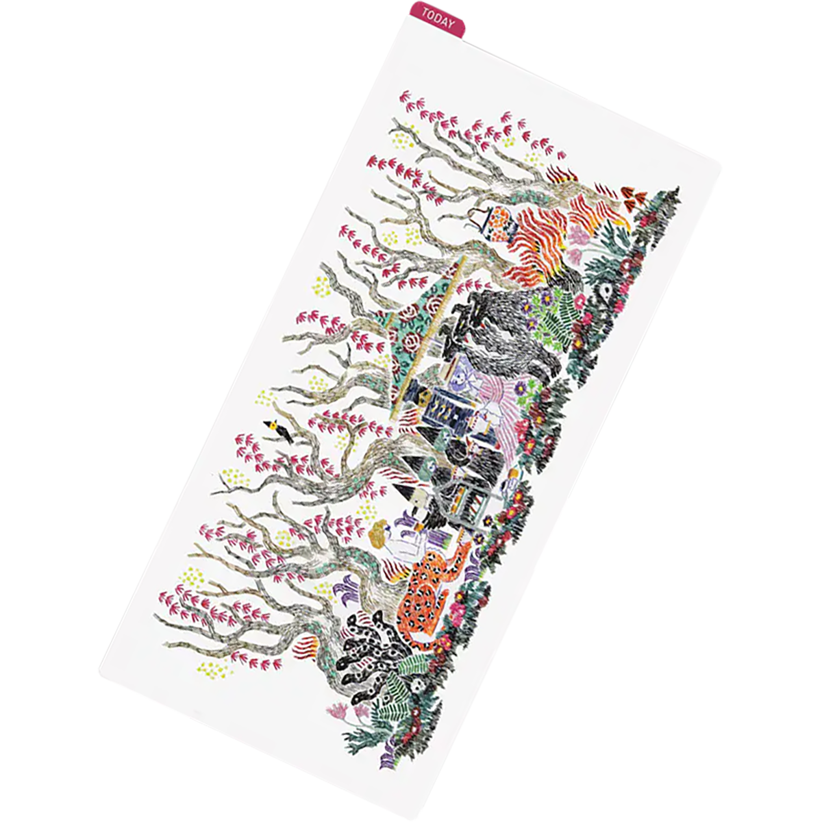 The Hobonichi Pencil Board for Weeks – Happy Tea Time (Group Party) combines practicality with the enchanting embroidery-inspired art of Iyo Okumi. Designed to perfectly fit the Hobonichi Weeks planner, this pencil board makes writing smoother while doubling as a bookmark thanks to its handy “Today” tab.