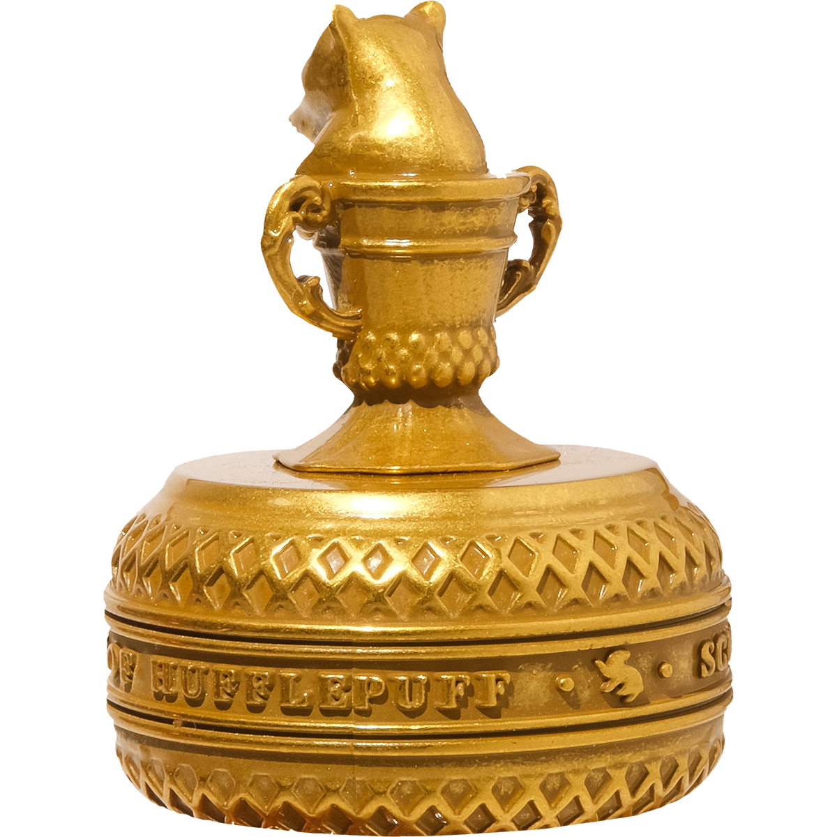 Premium Bottle Design: Elegant 38ml glass bottle with a sculpted metal cap showcasing the Hufflepuff badger.